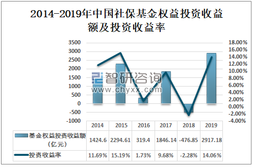 2018年中国社保基金权益投资收益额为-476.85亿元,投资收益率为-2.28%;2019年中国社保基金权益投资收益额为2917.18亿元,投资收益率为14.06%。