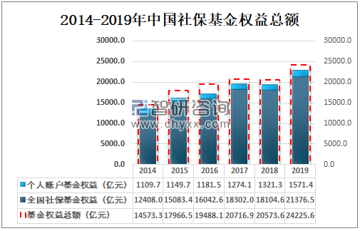 2014-2019年中国社保基金权益总额