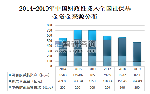 2014-2019年中国财政性拨入全国社保基金资金来源分布