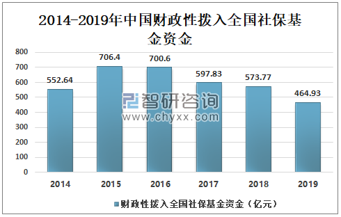 2018年中国财政性拨入全国社保基金资金为573.77亿元,2019年中国财政性拨入全国社保基金资金为464.93亿元,较2018年减少了108.84亿元。