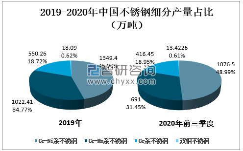 2019-2020年中国不锈钢细分产量占比