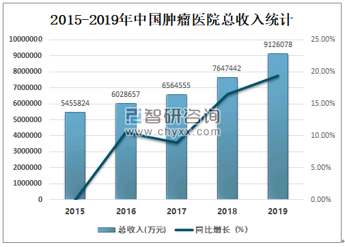 2015-2019年中国肿瘤医院总收入统计