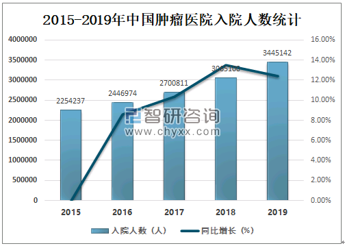 2015-2019年中国肿瘤医院入院人数统计