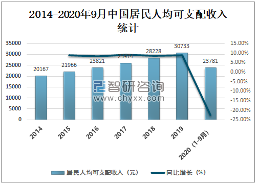 2014-2020年9月中国居民人均可支配收入统计(元)