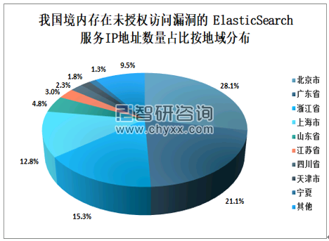 我国境内存在未授权访问漏洞的 ElasticSearch服务IP地址数量占比按地域分布