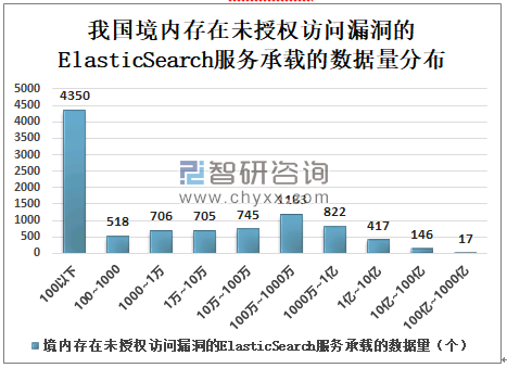 我国境内存在未授权访问漏洞的ElasticSearch服务承载的数据量分布情况