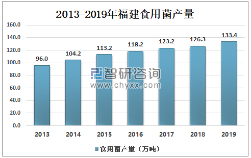 福建山多地少,发展食用菌资源丰富,广大农村,尤其是贫困山区,都把食用菌生产作为重点开发项目,成为农村经济的重要支柱。2019年福建省食用菌产量为133.4万吨,较2018年的126.3万吨同比增长5.61%。