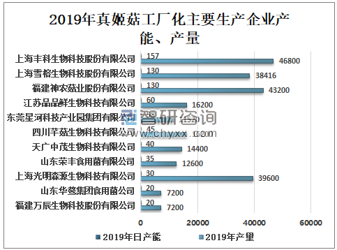 2019年真姬菇工厂化主要生产企业产能、产量统计