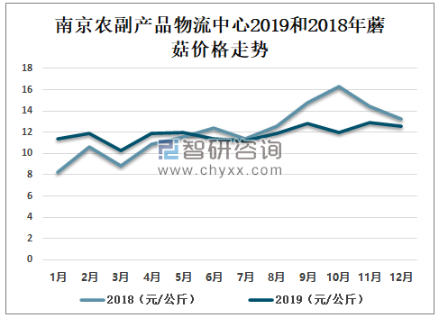 南京农副产品物流中心2019和2018年蘑菇价格走势