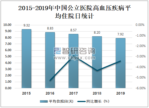 随着中国医疗水平的提高,中国公立医院高血压疾病平均住院日逐年减少,2019年中国公立医院高血压疾病平均住院日为7.92天,较2018年减少了0.28天。