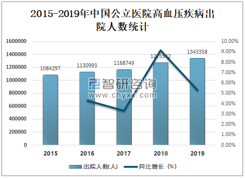 2015-2019年中国公立医院高血压疾病出院人数统计