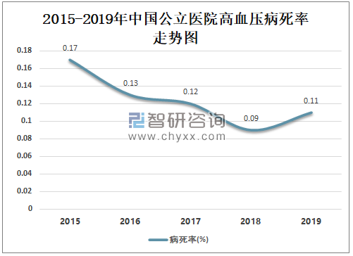 2015-2018年中国公立医院高血压病死率逐年下降,2019年较2018年有所增长,2019年中国公立医院高血压病死率为0.11%,较2018年增长了0.02%。