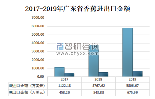 智研咨询发布的《2021-2027年中国香蕉行业发展现状分析及发展趋势研究报告》数据显示:2018年广东省香蕉进口金额为3767.62万美元,出口金额为543.88万美元;2019年广东省香蕉进口金额为5806.67万美元,出口金额为675.99万美元。