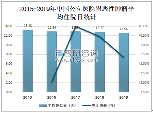 随着中国医疗水平的不断提升,公立医院胃恶性肿瘤平均住院日逐年减少,2019年中国公立医院胃恶性肿瘤平均住院日为12.56天,较2018年减少了0.21天,同比减少1.64%。