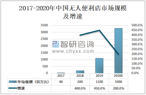 2017-2020年中国无人便利店市场规模及增速