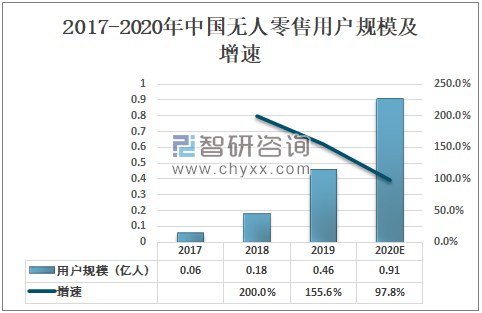 2017-2020年中国无人零售用户规模及增速