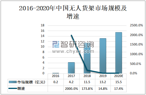 2016-2020年中国无人货架市场规模及增速