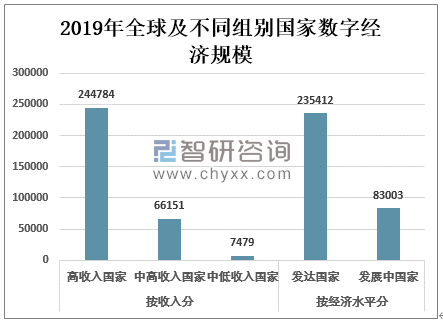 2019年全球及不同组别国家数字经济规模(亿美元)