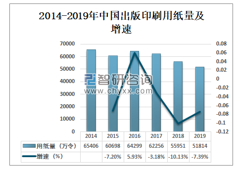 2019年中国出版印刷业黑白印刷产量为24907万令,较上年减少2854万令,同比下降10.28%;出版印刷业彩色印刷产量为119584万对开色令,较上年增加3196万对开色令,同比增长2.75%。