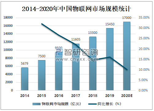 万物互联时代将来临。物联网将迎来较大的发展机遇,2019年中国物联网市场规模达15450亿元,较2018年增加了2150亿元,同比增长16.17%,预计2020年中国物联网市场规模将突破17000亿元,十三五期间物联网总体产业规模保持20%的年均增长率,预计未来仍将保持较高增速。