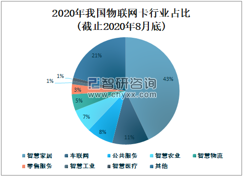 2020年我国物联网卡行业占比(截止2020年8月底)