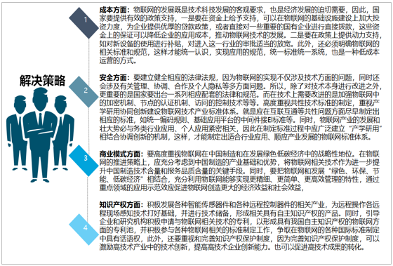 面对中国物联网发展中存在的问题,解决策略主要包括以下四个方面.