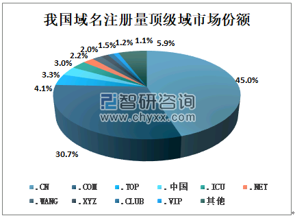 我国域名注册量顶级域市场份额