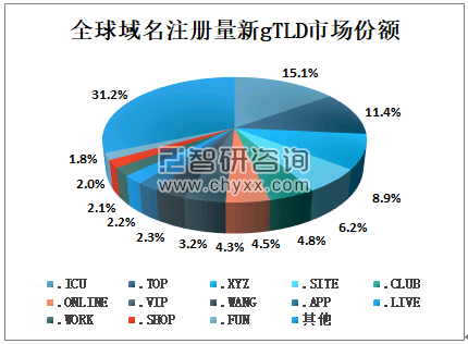 全球域名注册量新gTLD主要包括.ICU、.TOP、.XYZ、.SITE、.CLUB、.ONLINE、.VIP、.WANG、.APP、