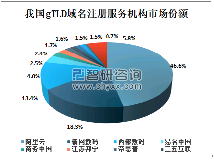 我国gTLD域名注册服务机构市场份额