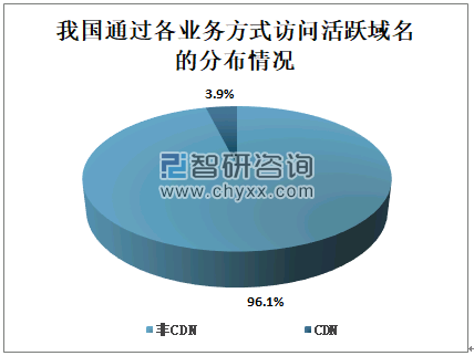 从域名应用的业务类型来看,截至2019年12月,由于CDN业务的快速发展,我国通过非CDN业务方式访问活跃域名的占96.1%,通过CDN业务方式访问活跃域名的占3.9%。