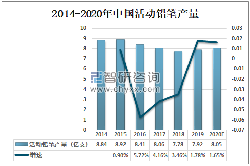 2014-2020年中国活动铅笔产量