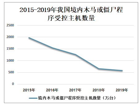 2015-2019年我国境内木马或僵尸程序受控主机数量
