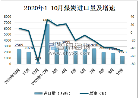 我国煤炭进口降幅继续扩大。2020年10月我国进口煤炭1373万吨,较上月减少495万吨,同比下降 46.6%,降幅比上月扩大 8.3%;2020年1-10月我国进口煤炭25336万吨,同比下降 8.3%。