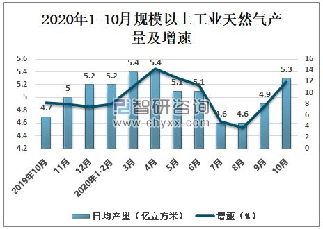 我国天然气生产有所加快。2020年10月我国生产天然气163亿立方米,同比增长11.9%,增速比上月加快 4.3%;日产5.3亿立方米,较上月增加 0.4 亿立方米。2020年1-10月我国生产天然气 1534 亿立方米,同比增长9%。