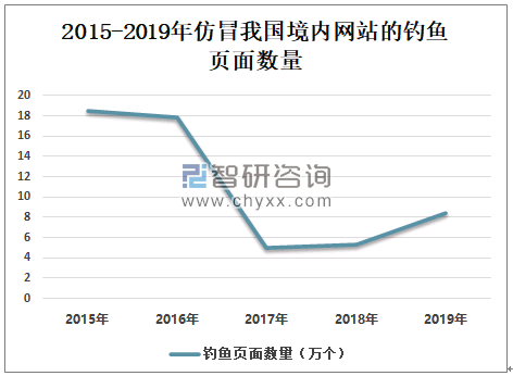2019年仿冒我国境内网站的钓鱼页面数量为8.47万个,较2018年增加3.17万个,同比增长59.81%。