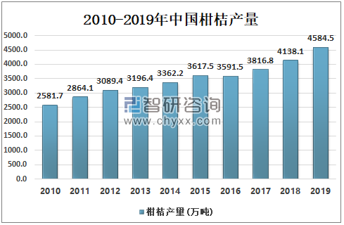 2010-2019年中国柑桔产量