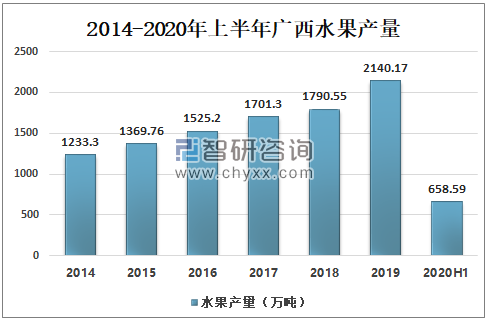 2014-2020年上半年广西水果产量