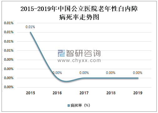 2015年中国公立医院老年性白内障病死率为0.01%,自2016年开始中国公立医院老年性白内障一直保持0死亡率。