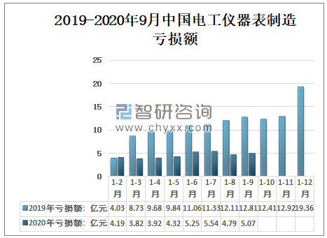 从电工仪器表制造亏损额方面来看,至2020年9月,中国各月份电工仪器表制造亏损额较去年均有所下降,2020年1-9月电工仪器表制造亏损额5.07亿元,较去年同期下降7.74亿元。