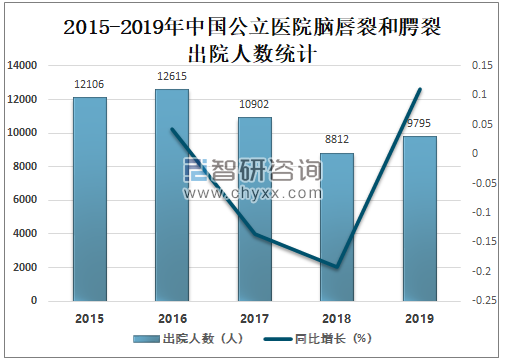 2015-2019年中国公立医院脑唇裂和腭裂出院人数统计