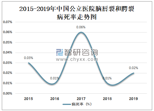 2019年中国公立医院脑唇裂和腭裂病死率为0.02%,较2018年增长了0.01%。