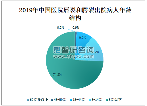 2019年中国医院唇裂和腭裂出院病人年龄结构