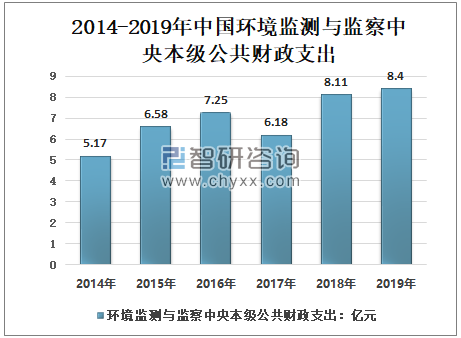 2018年中国环境监测与监察中央本级公共财政支出8.11亿元,比上年增加1.93亿元;2019年中国环境监测与监察中央本级公共财政支出8.4亿元,比上年增加0.29亿元。