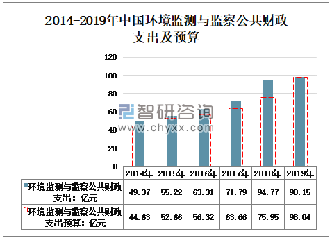 2014-2019年中国环境监测与监察公共财政支出及预算