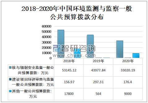 2020年中国环境监测与监察一般公共预算拨款42196.59万元,其中:核与辐射安全监督一般公共预算拨款33020.19万元,建设项目环评审查与监督一般公共预算拨款176.4万元,其他一般公共预算拨款9000万元。