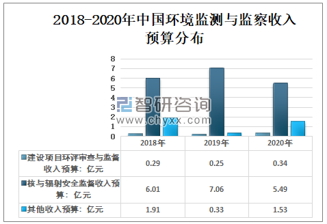 2020年中国环境监测与监察收入预算7.36亿元,其中:建设项目环评审查与监督收入预算0.34亿元,核与辐射安全监督收入预算5.49亿元,其他收入预算1.53亿元。
