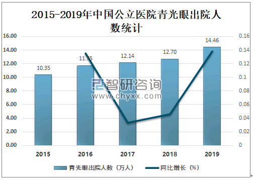 近年来中国公立医院青光眼出院人数快速增长,2019年中国公立医院青光眼出院人数达14.46万人,较2018年增加了1.76万人,同比增长13.82%。