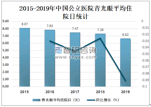 随着中国医疗水平的提升,近年来中国公立医院青光眼平均住院日逐年减少,2019年中国公立医院青光眼平均住院日为6.62天,较2018年减少了0.66天。