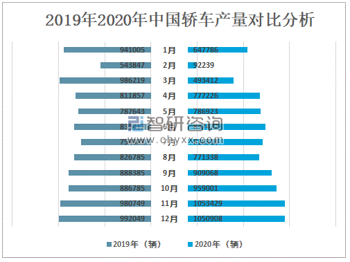 2019年2020年中国轿车产量对比分析
