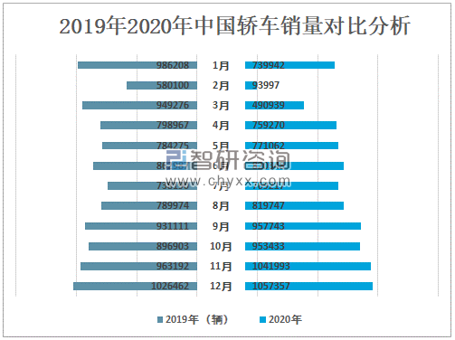 2019年2020年中国轿车销量对比分析